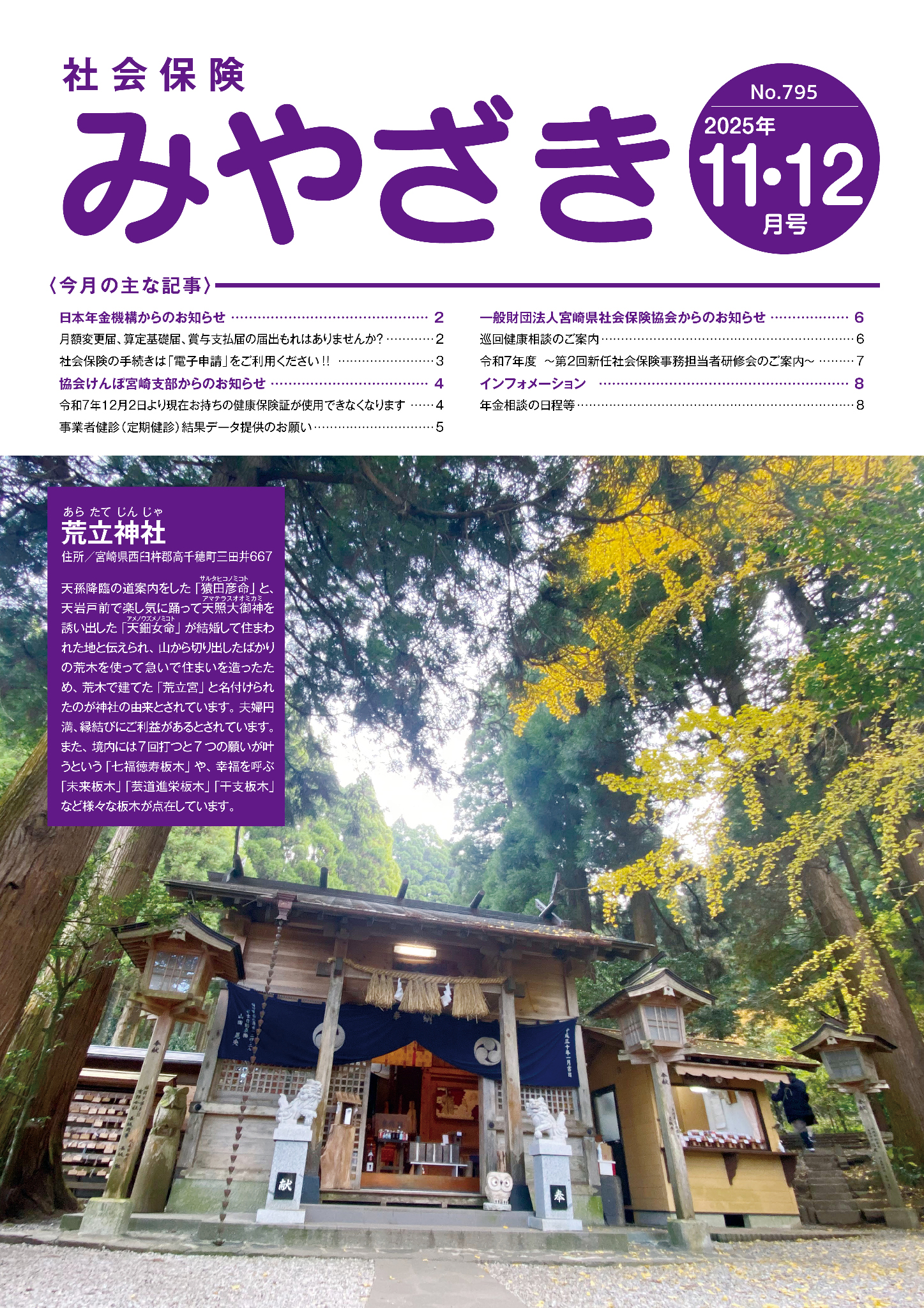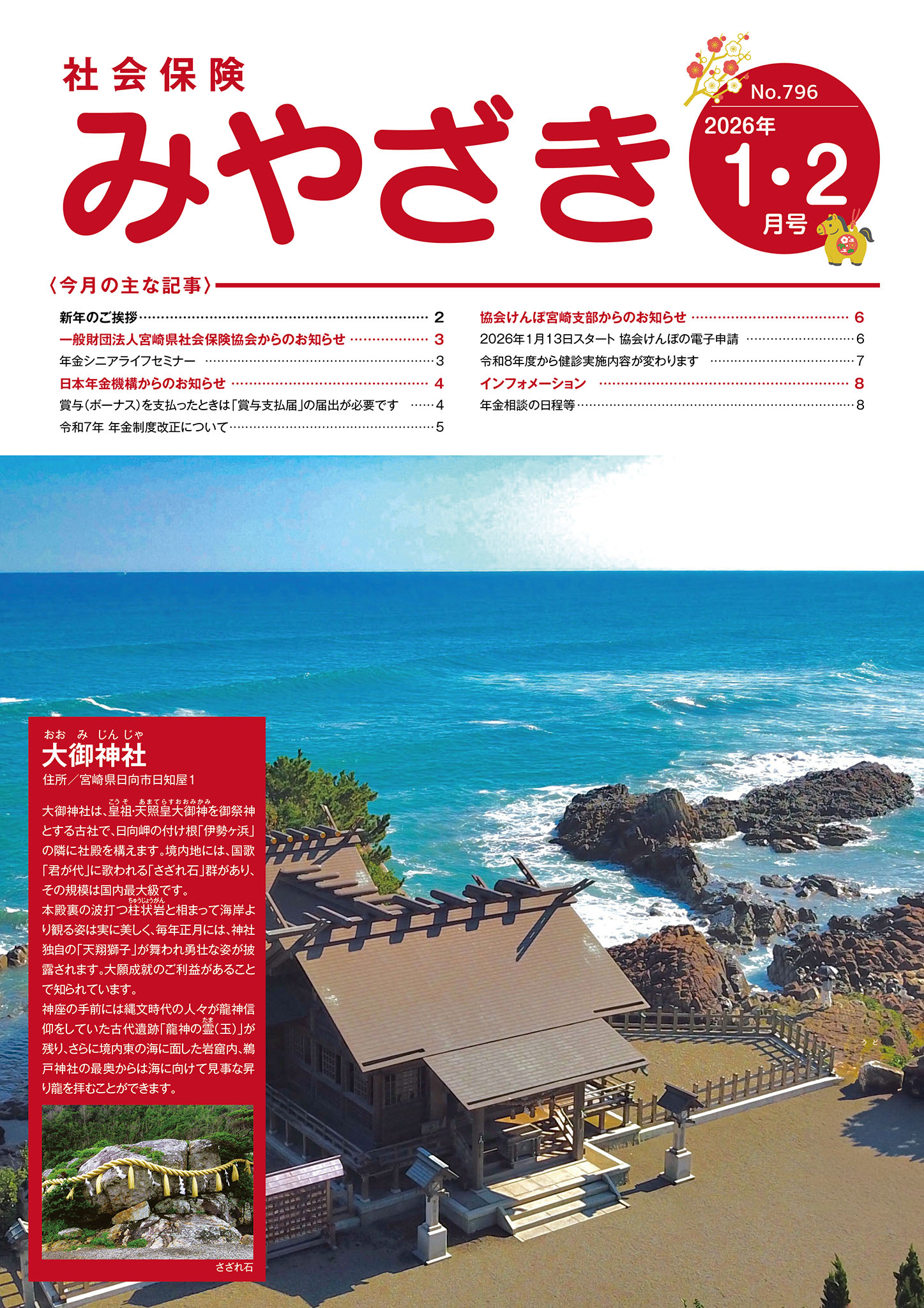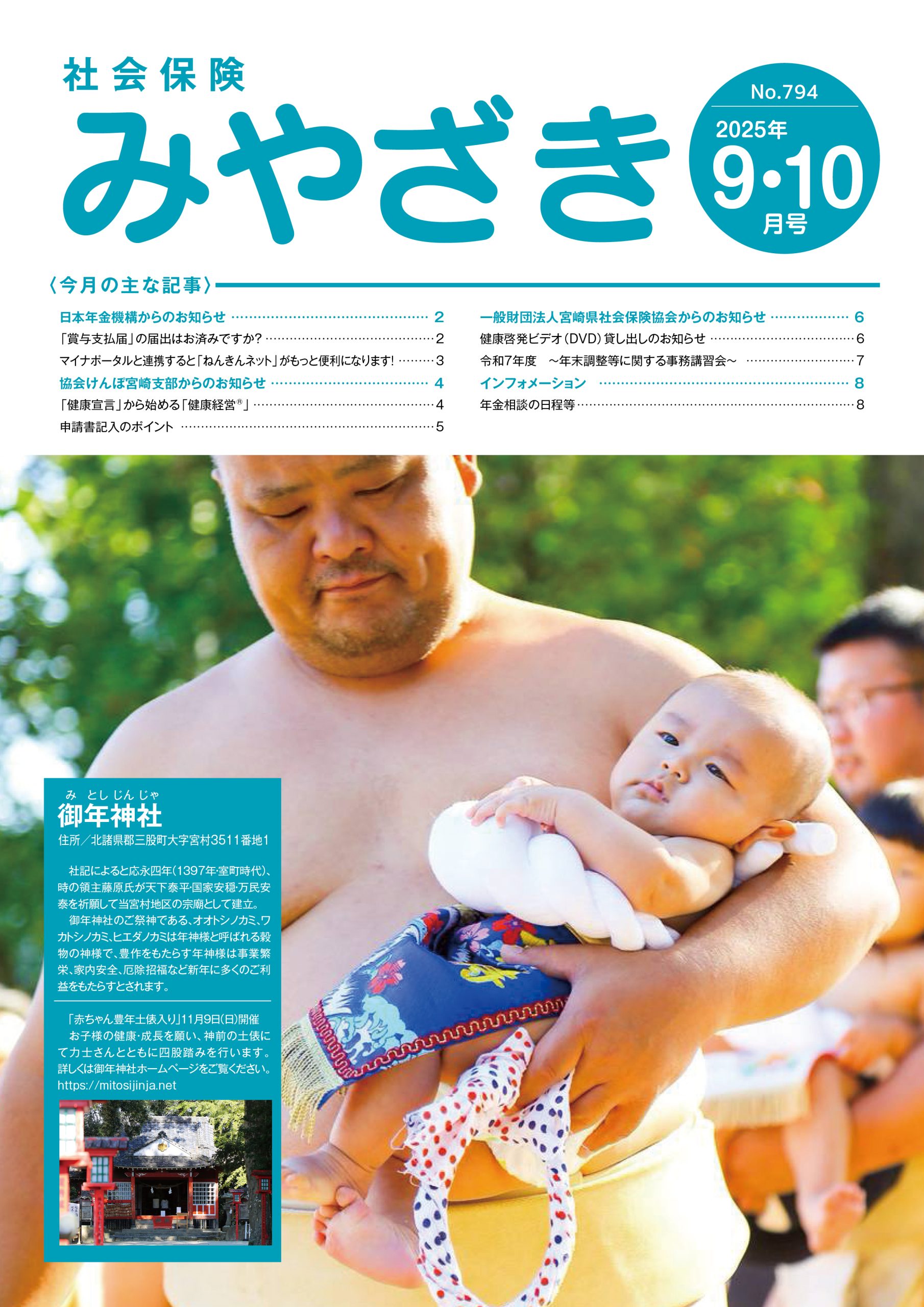 健康保険、厚生年金保険など社会保険制度の普及を図り円滑な運営に寄与するため、わかりやすく編集した広報誌「社会保険みやざき」等の出版物を発行し、配布しています。 以下で「社会保険みやざき」をPDFでご覧いただけます。 また、過去の記事もご覧いただけます。